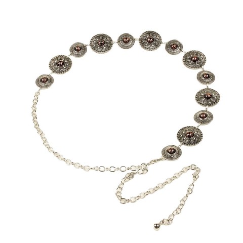 Venta caliente flor Metal cadena cinturón occidental Vintage ajustable cintura antigua cadena para vestidos de mujer
