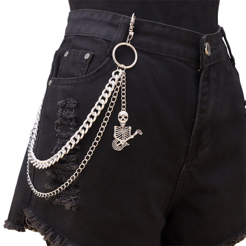 Cadenas de bolsillo de calavera personalizadas Hip Hop Halloween Punk gótico 50cm cadena de eslabones de aleación cinturón billetera Biker para Jeans adornados