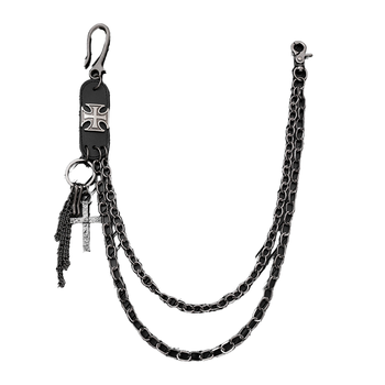 Cadena de Cintura de Metal plateado multicapa con diseño Punk, cadena de bolsillo de hierro decorativa de cuero con colgante cruzado para Jeans